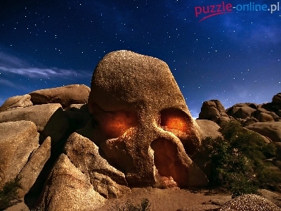 Czaszka, Krzewy, Pustynia, Skały, Niebo
