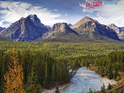 Dolina Bow Valley, Niebo, Las, Prowincja Alberta, Góry, Park Narodowy Banff, Kanada, Rzeka Bow River