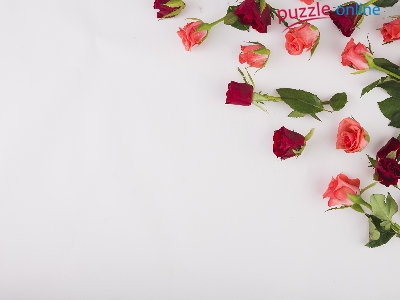 Puzzle Pąki, Kwiaty, Róże, Białe tło