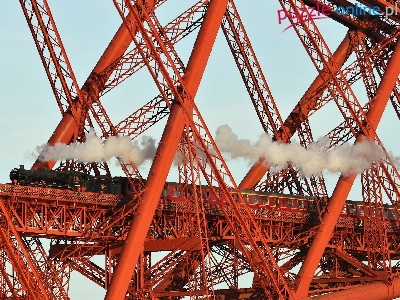 Dym, Pociąg parowy, Szkocja, Most Forth Bridge, Lokomotywa, Edynburg