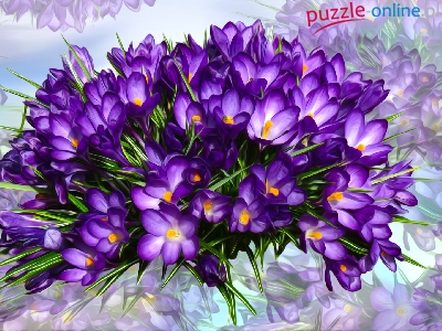 Puzzle Fioletowe, Kwiaty, Krokusy, Grafika