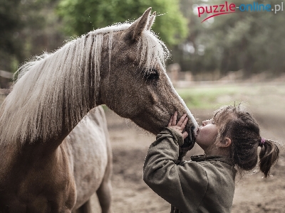Puzzle Dziewczynka, Koń, Dziecko, Buziak