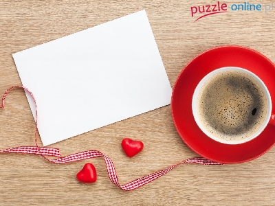 Tasiemka, Czerwona, Kartka, Kawa, Filiżanka, Serca