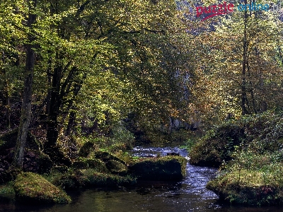 Rzeka, Zielone, Kamienie, Las, Drzewa, Omszałe