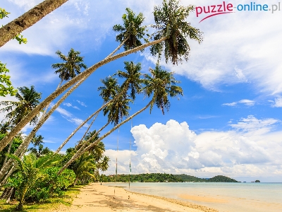 Palmy, Prowincja Trat, Chmury, Wyspa Ko Mak, Morze, Plaża, Tajlandia