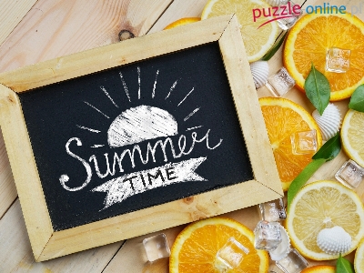 Summer time, Napis, Kostki, Lodu, Deski, Pomarańcze, Tabliczka, Plastry, Muszelki