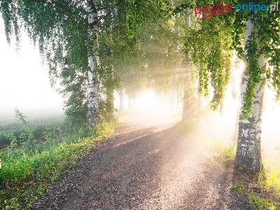 Puzzle Drzewa, Promienie słońca, Droga, Brzozy