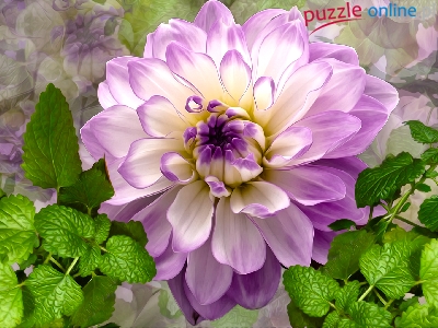 Puzzle Liście, Kwiat, Dalia, Grafika