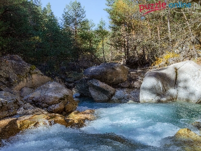 Puzzle Głazy, Las, Rzeka, Kamienie
