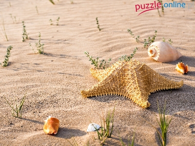 Puzzle Muszelki, Piasek, Roślinki, Rozgwiazda