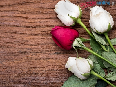 Puzzle Pąki, Cztery, Róże, Liście
