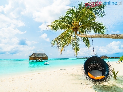 Morze, Huśtawka, Wakacje, Palma, Plaża, Domek, Kosz