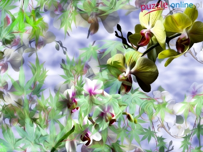 Puzzle Liście, Kwiaty, Storczyki, Grafika