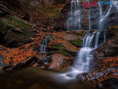 Opadłe, Skały, Wodospad, Liście