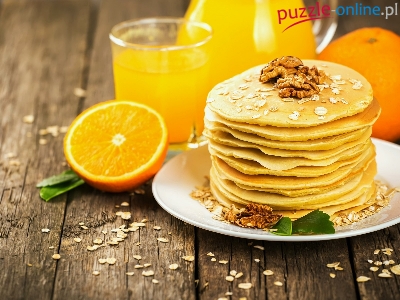 Sok, Orzechy włoskie, Deski, Naleśniki, Pomarańcz, Talerz