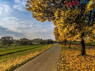 Droga, Pola, Jesień, Drzewa, Liście