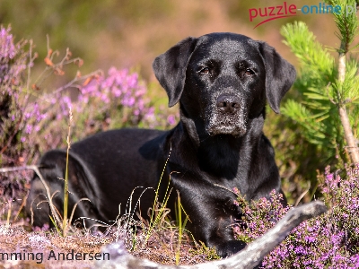 Puzzle Labrador retriever, Pies, Czarny, Wrzosy