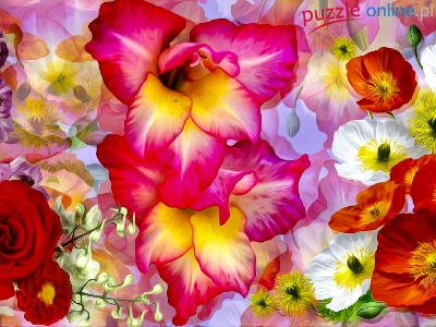 Maki, Grafika, Kwiaty, Mieczyk, Róża