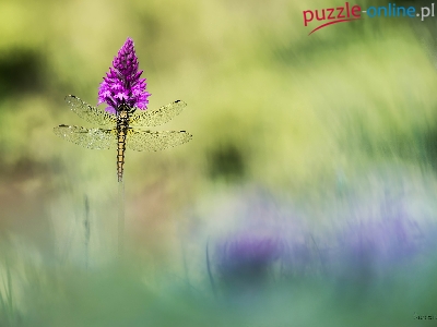 Puzzle Purpurowy, Ważka, Kwiatek