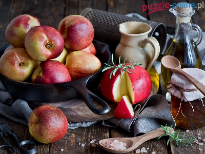 Dzbanuszek, Patelnia, Łyżki, Jabłka, Miód, Drewniane