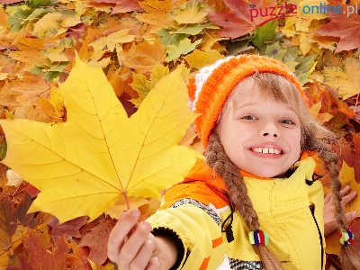 Warkocze, Liście, Dziecko, Dziewczynka, Jesienne