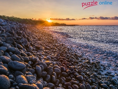 Puzzle Kamienie, Brzeg, Morze, Zachód słońca