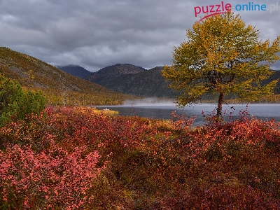 Mgła, Jezioro Jack London, Chmury, Kołyma, Rosja, Roślinność, Góry, Drzewa, Obwód magadański