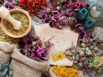 Zioła, Woreczki, Suszone, Kwiaty, Moździerz