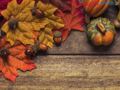 Liście, Deski, Jesienna, Dynie, Sztuczne, Żołędzie, Kompozycja
