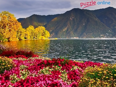 Jezioro, Kwiaty, Jesień, Góry, Kolorowe