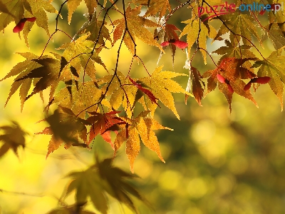 Puzzle Klon, Kolorowe, Liście, Rozmyte tło