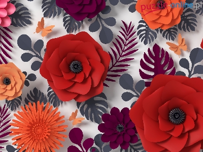 Puzzle Wycinanki, Kwiaty, Motyle, Papierowe