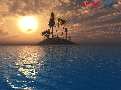 Wyspa, Chmury, Morze, Zachód Słońca, Palmy