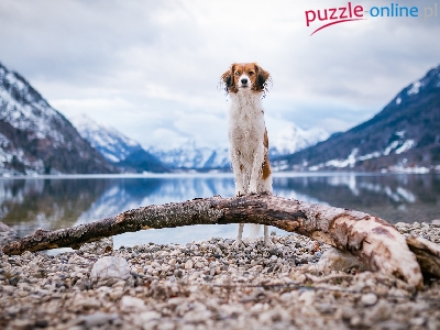Płochacz holenderski, Kłoda, Góry, Kamienie, Pies, Kooikerhondje, Woda