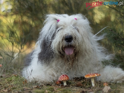 Puzzle Owczarek staroangielski bobtail, Pies, Grzyby