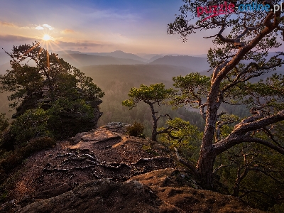 Sosny, Niemcy, Palatynat Reński, Góry, Las Palatynacki, Drzewa, Wschód słońca, Nadrenia-Palatynat