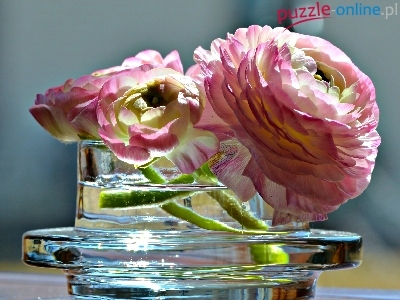 Puzzle Światło, Jaskier azjatycki, Kwiaty, Wazon