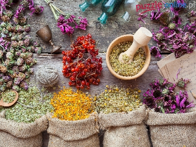Woreczki, Rośliny, Kompozycja, Suszone, Zioła, Moździerz