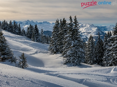 Góry, Szwajcaria, Hoch-Ybrig, Zaśnieżone, Świerki, Zima, Drzewa, Kanton Schwyz
