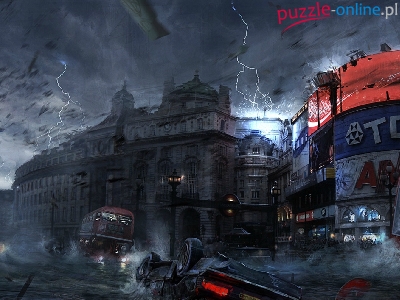 Puzzle Miasto, Final Fantasy, Burza, Samochody