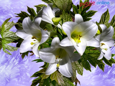 Puzzle Listki, Kwiaty, Lilie, Grafika