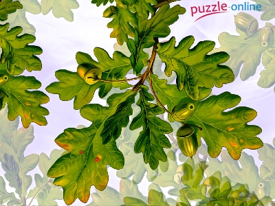 Puzzle Żołędzie, Liście, Dąb, Grafika