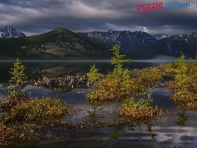 Góry Kołymskie, Kołyma, Rosja, Zachmurzone niebo, Jezioro Jack London, Drzewa, Obwód magadański