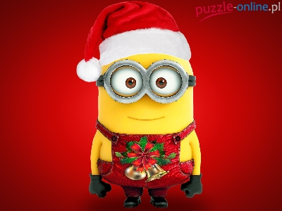 Puzzle Minionek, Czerwone, Tło, Mikołaj