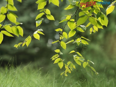 Puzzle Gałązki, Zielone, Liście, Trawa