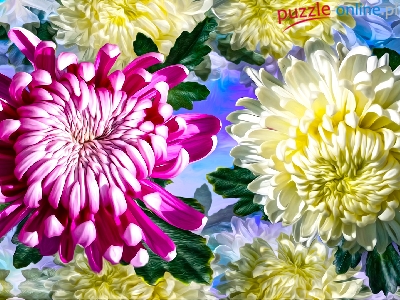 Biała, Grafika, Kwiaty, Różowa, Chryzantema