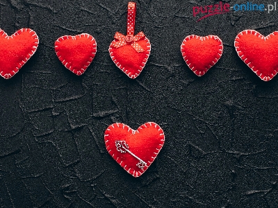 Puzzle Klucz, Czerwone, Serduszka, Ciemne tło