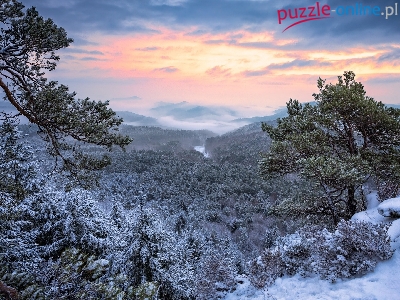 Lasy, Niemcy, Palatynat Reński, Drzewa, Las Palatynacki, Zima, Góry, Nadrenia-Palatynat