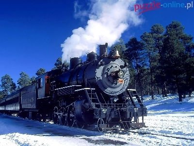Puzzle Drzewa, PociÄ…g, Parowy, Zima
