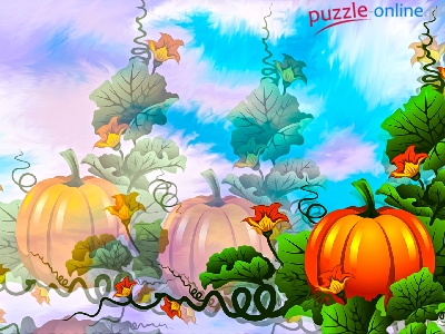 Puzzle Listki, Grafika, Dynie, Kwiatki